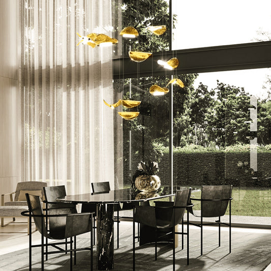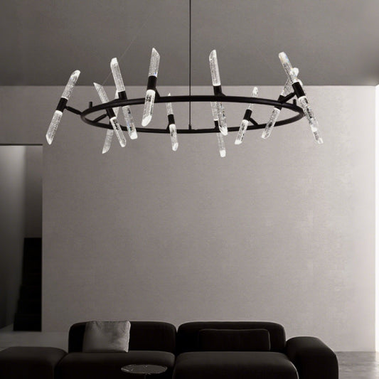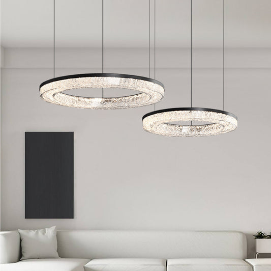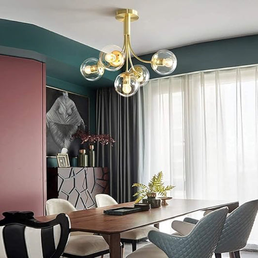 Elegant lighting fixtures with crystal elements refract light to create mesmerizing effects.